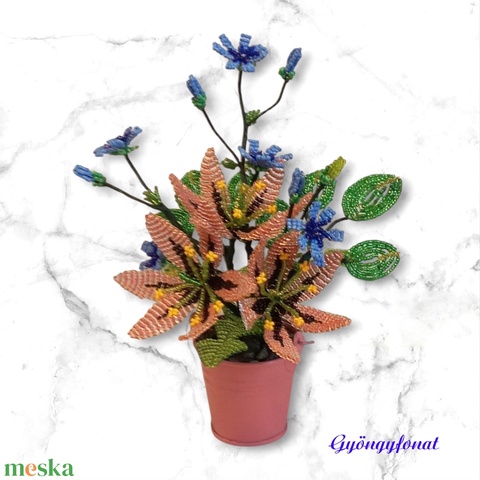 - Technika: gyöngyfűzés, gyöngyhímzés, virágkötés