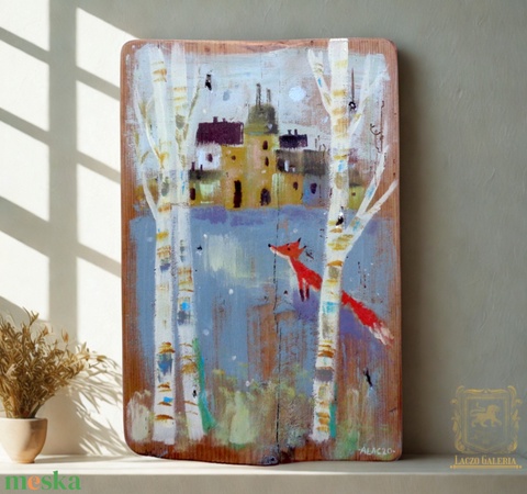 Városszéli Róka koma - Rusztikus Fatábla, Ajándék ötlet - Egyedi Falidísz - Róka