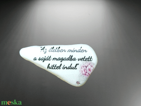 "Az életben minden a saját magadba vetett hittel indul." Díszkő idézettel