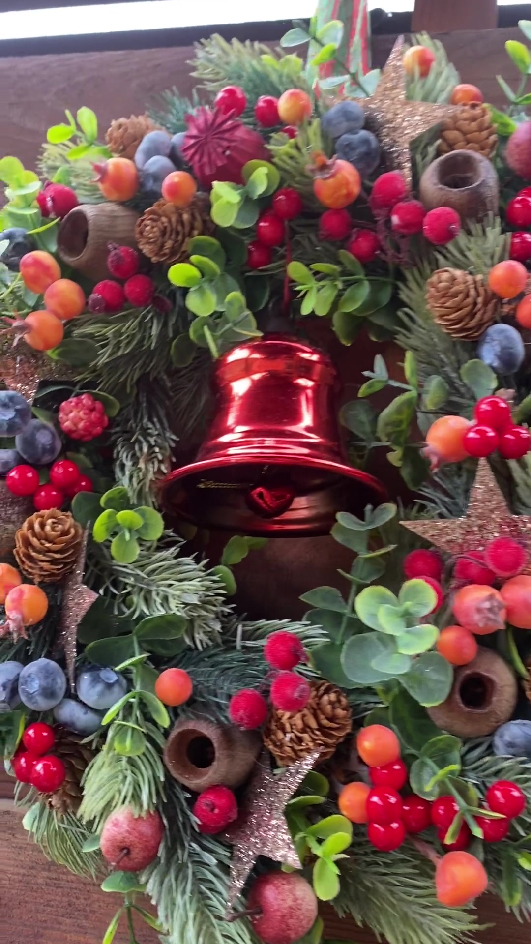 Piros csengettyűs Karácsonyi kopogtató ajtódísz koszorú