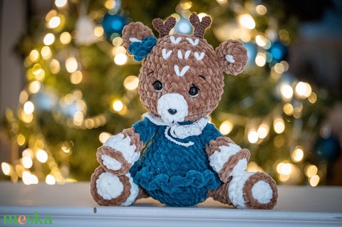 Horgolt plüss szarvas - kék
