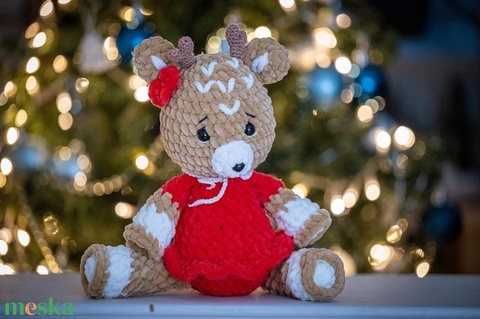 Horgolt plüss szarvas - piros