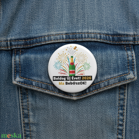 A "Boldog Új Évet! 2026 – Ma [rejtett információ] feliratú, pezsgős-tűzijátékos dizájn egyértelmű üzenetet küld: ez az este a felhőtlen szórakozásé. Viseld a kabátodon vagy a pulcsidon, és indítsd az újévet egy nagy adag humorral!