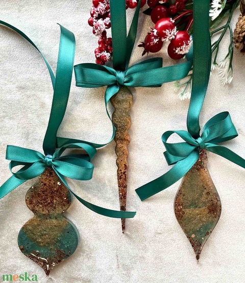 Zöld-arany kézműves karácsonyfadísz szett – elegáns, csillogó karácsonyi dekoráció