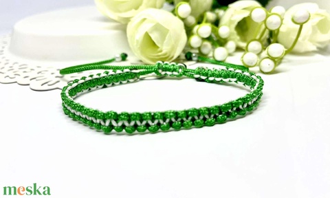 Fonott karkötő – -fehér-zöld színű, gyöngyös díszítéssel