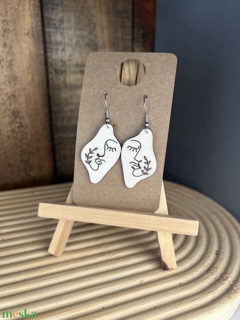 Női arc fa fülbevaló minimalista