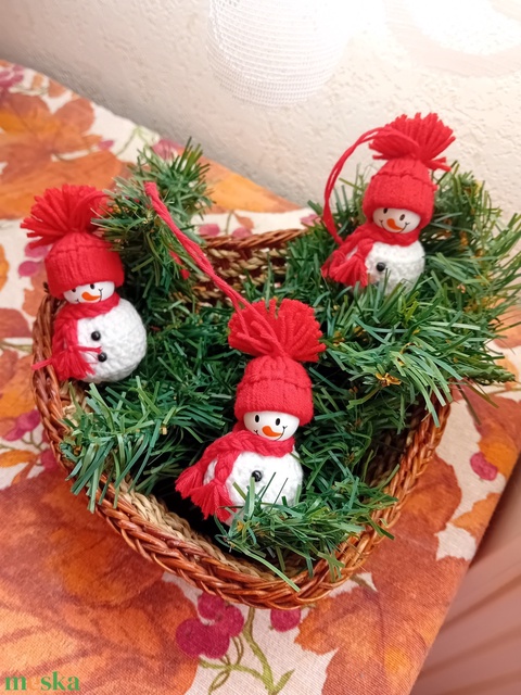 Horgolt hóember piros sapkával