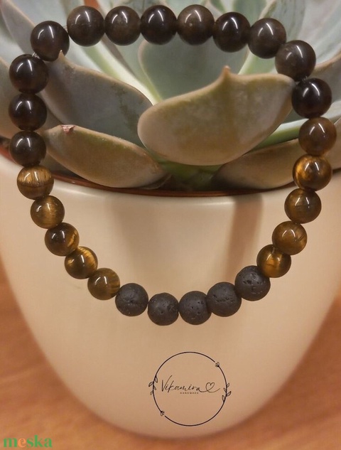 Tigrisszem-obszidián-lávakő aroma ásványkarkötő