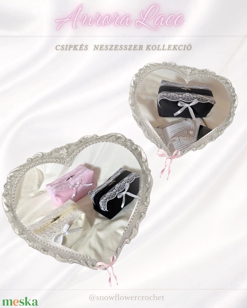 Aurora Lace Coquette Vintage csipkés neszesszer, romantikus sminktáska, masnival és csipkével