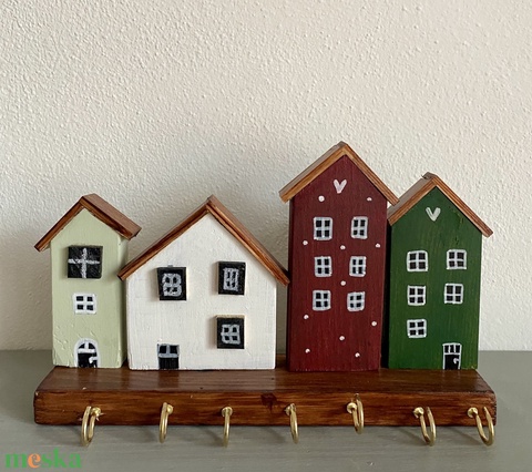 Bordó, menta, zöld házikós kézműves kulcstartó