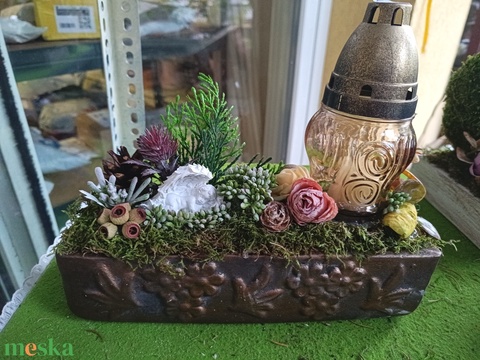 - Anyaga: kerámia, gipsz, selyemvirág, mécses