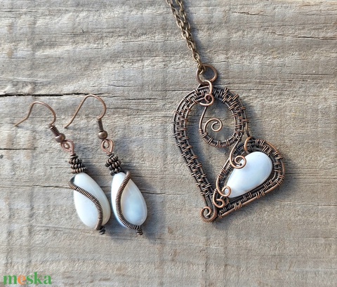 Vörösréz ékszer szett kalcedon ásványkövekkel