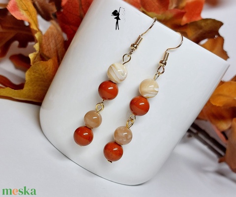 "Melengető narancs" őszi fülbevaló karneollal, kagylógyönggyel, holdkővel