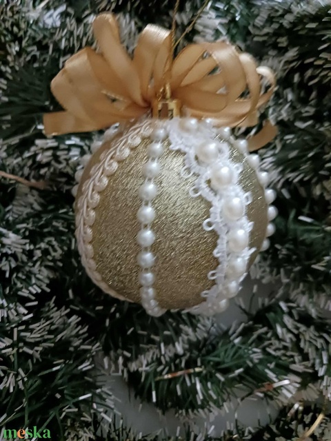 Arany ,fehérrel,bézzsel,diszitett gömb