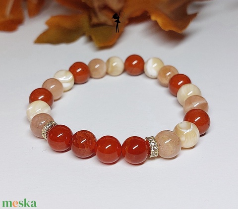 "Melengető narancs" őszi ásványkarkötő karneollal, kagylógyönggyel, holdkővel