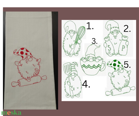 Manó, Törpe, Gnóm Design Nagy Méretű Konyharuha, Törlőkendő Gépi Hímzés