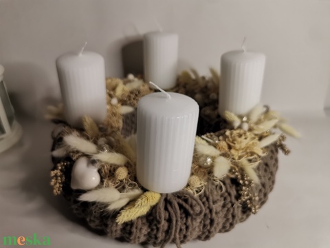 - Anyaga: szalmakoszorú, zsinorfonal, gyertya, száraztermés, szárazvirág