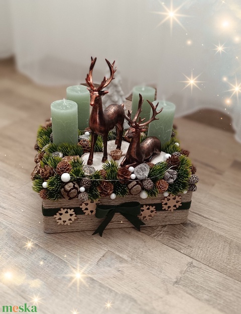 Adventi asztaldísz bronz színű szarvasokkal, led világítással