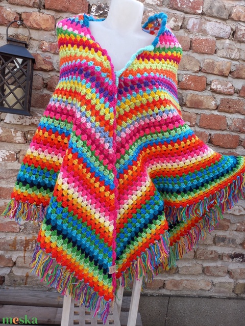 Bohém rojtos Horgolt vállkendő - háromszög alakú