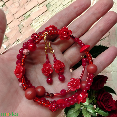 Piros rózsa memoria karkötő és fülbevaló szett