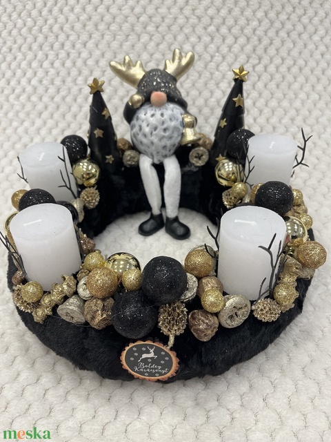 Fekete-arany, manós adventi koszorú