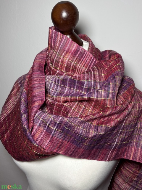 Ha egy olyan ragyogó sálat keresel, amely tökéletes eleganciát és meleget biztosít, ez a kézzel szőtt Málna Selyem kendő tökéletes választás. Gyönyörű fénye van, és kellemes a tapintása. A kendő szövésének bonyolult technikája egyedi, textúrált mintát hoz létre, így ez a kiegészítő valóban egyedülálló bármely ruhatárban.