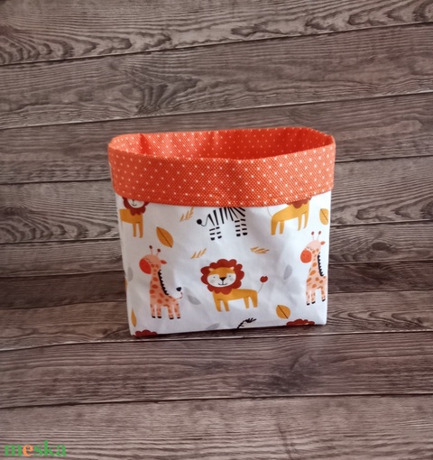 Anyaga 100% pamutvászon, oldala merevített, így üresen is megáll. Elsősorban pelenka tárolásra készült, de zoknigombócokat, játékokat, vagy bármilyen tetszés szerinti dolgokat tárolhatunk benne:).