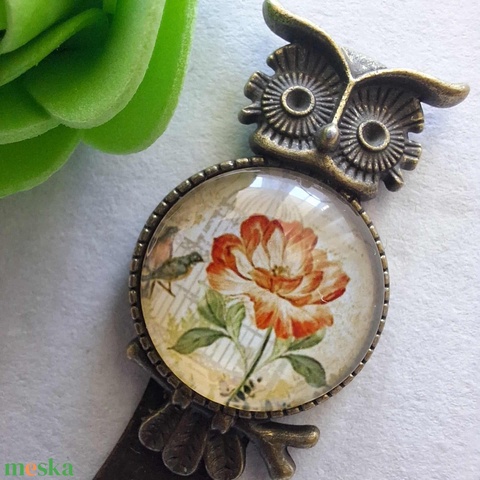 Bagoly mintás fém könyvjelző virágos kabosonnal