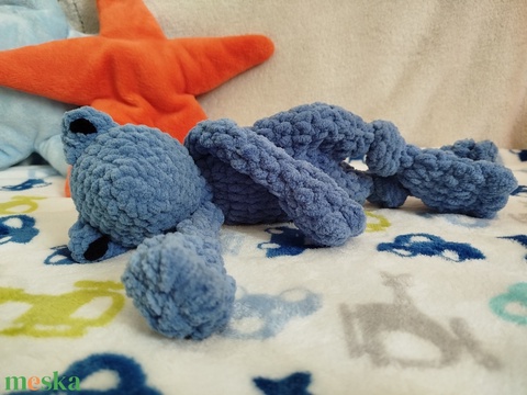 Horgolt béka szundipajti - kék