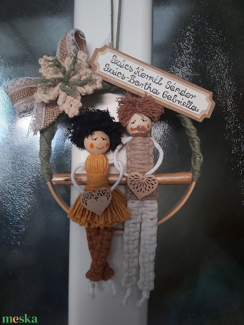 Ajtónévtábla makramé figurákkal