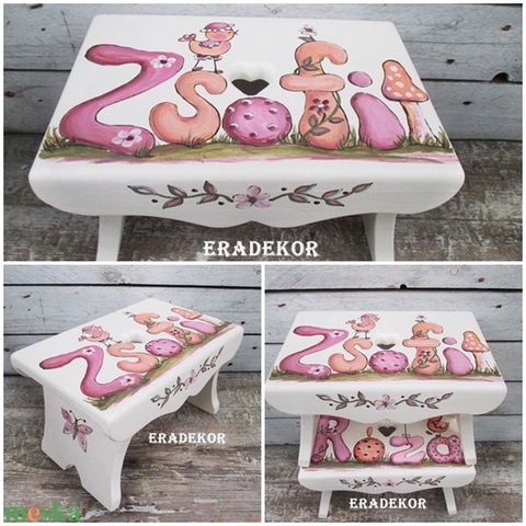 gyerekszoba bútorok, romantikus antikolt festéssel készült fa ajándéktárgyak a provence-i stílus jegyében