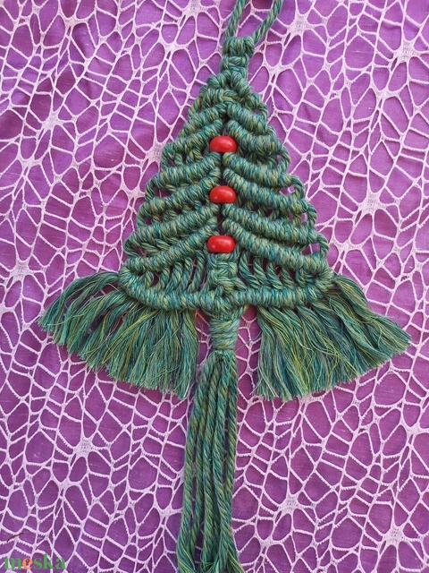 Makramé fenyőfa lakásdekoráció, ablak vagy ajtódísz