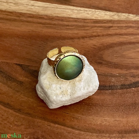 Eozinos aranyozott gyűrű - mentett porcelán darabokból - eozin mázas, állítható