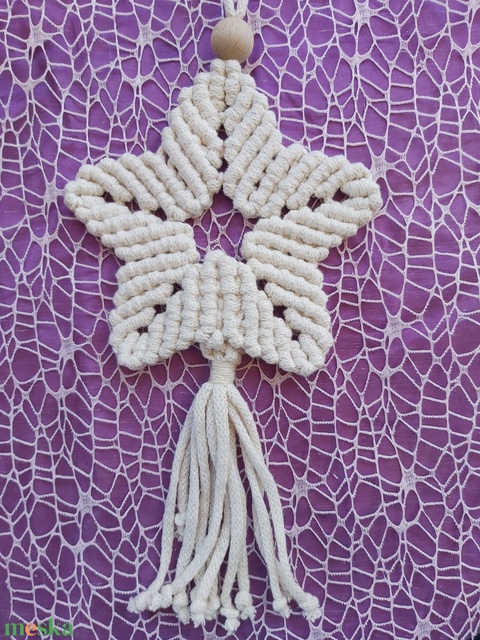 Makramé karácsonyi csillag lakásdekoráció, ablak vagy ajtódísz