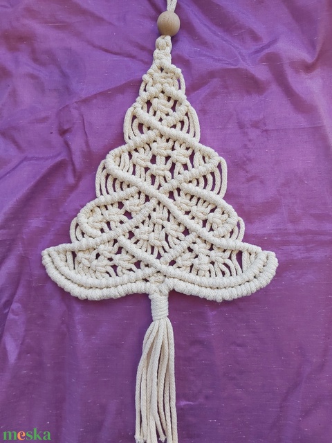 Makramé fenyőfa lakásdekoráció, ablak vagy ajtódísz
