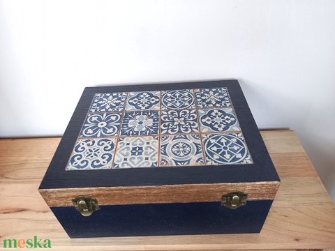 XXL nagy fa doboz óceánkék-bronz