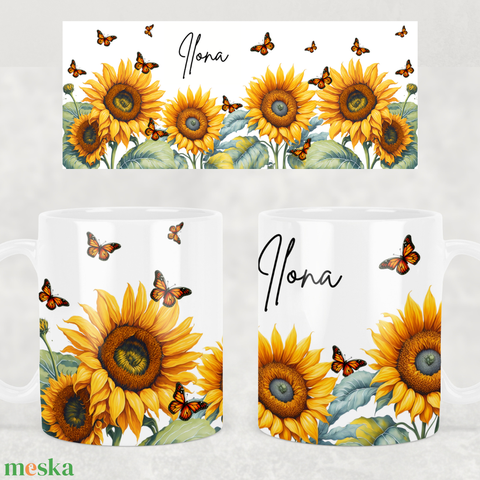 Napraforgós bögre - bármilyen névvel