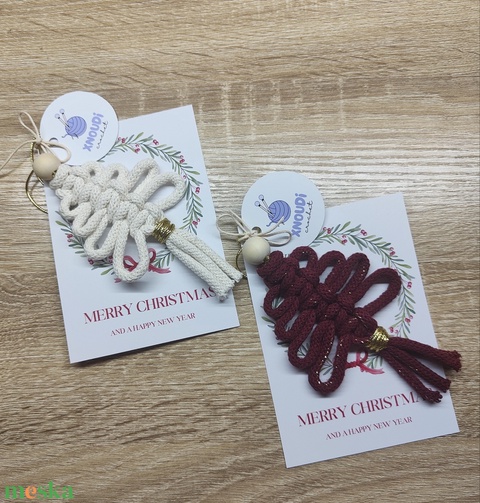 - Anyaga: bobbiny 5mm fonal, fa golyó, karácsonyi üdvözlő