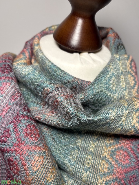 Ha egy olyan ragyogó sálat keresel, amely tökéletes eleganciát és meleget biztosít, ez a kézzel szőtt zöldes mályva Merino Selyem kendő tökéletes választás. Gyönyörű fénye van, és kellemes a tapintása. A kendő szövésének bonyolult technikája egyedi, textúrált mintát hoz létre, így ez a kiegészítő valóban egyedülálló bármely ruhatárban.