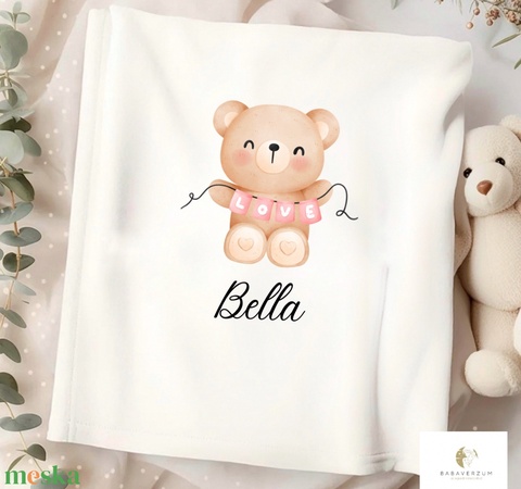 Névre szóló takaró babáknak, szívecskés, mackó mintával