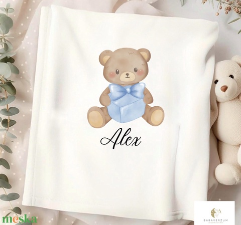 Névre szóló takaró babáknak, kék, mackó mintás mintával