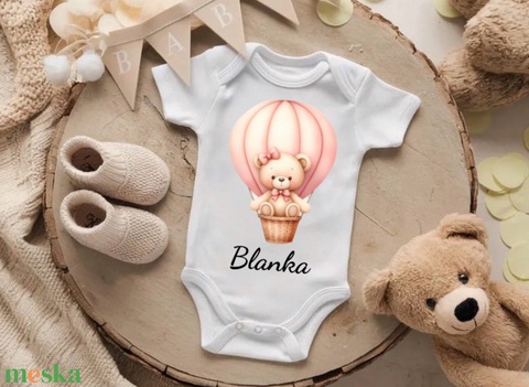 Névre szóló body, rózsaszín maci mintával, rövid/ hosszú ujjú