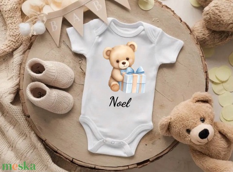 Névre szóló body, kék maci mintával, rövid/ hosszú ujjú