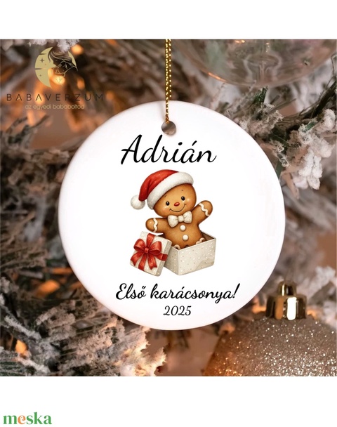 Névre szóló, első karácsonyos dísz, mézeskalács mintával