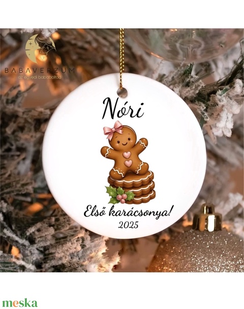Névre szóló, első karácsonyos dísz, mézeskalács mintával