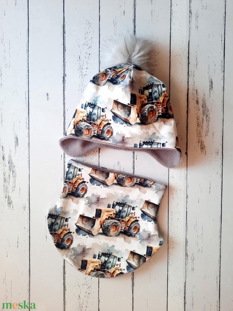 Munkagépes téli sapka-sál szett (50-52 cm)