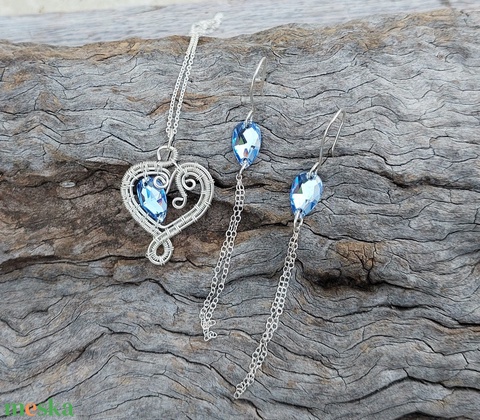 Sterling ezüst drótékszer szett kék swarovski kristályokkal