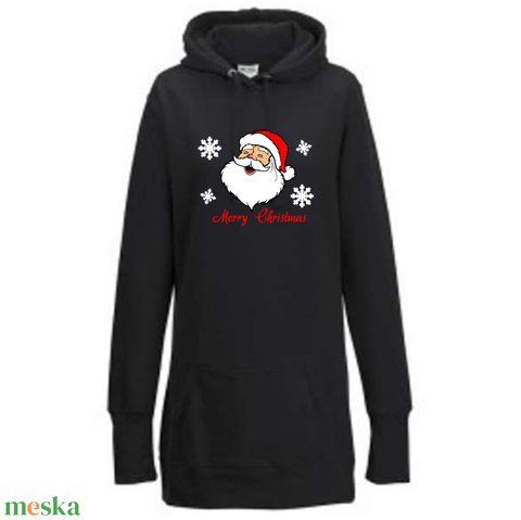 Karácsonyi mintás fekete női kapucnis hosszú pulóver 4 karácsonyi mintával kérheted