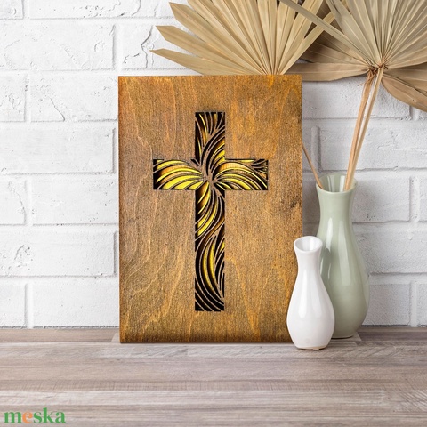 Natúr fali Kereszt, Rétegelt 3D falidísz,