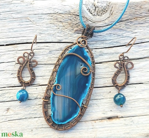 Vörösréz drótékszer szett sötétkék achát ásványokkal
